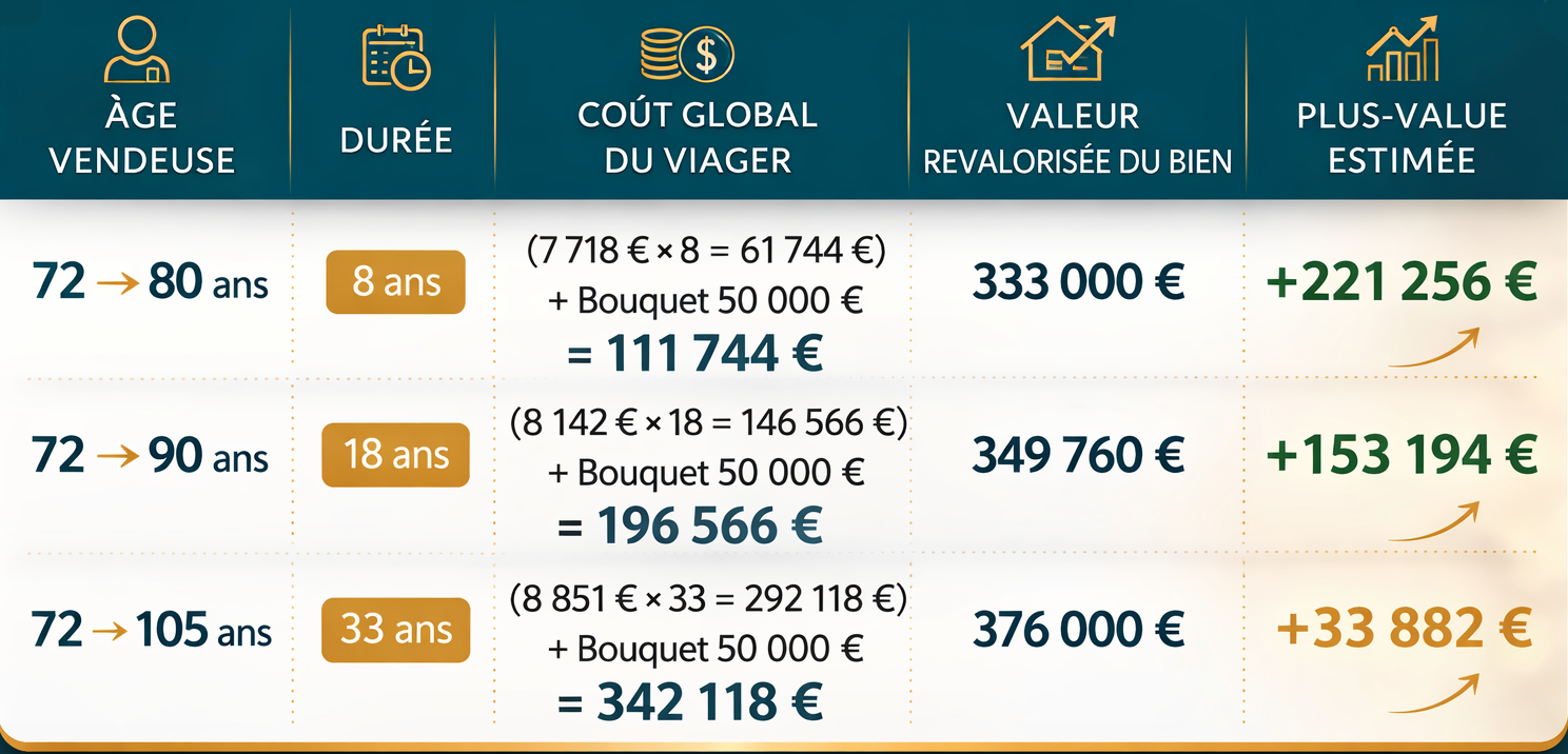 Les situations exceptionnelles existent, mais les calculs actuariels utilisés dans les ventes en viager tiennent déjà compte de ces probabilités.
